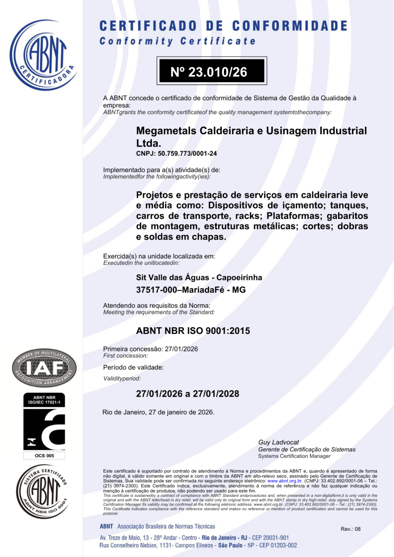 MEGAMETALS CALDEIRARIA E USINAGEM INDUSTRIAL LTDA